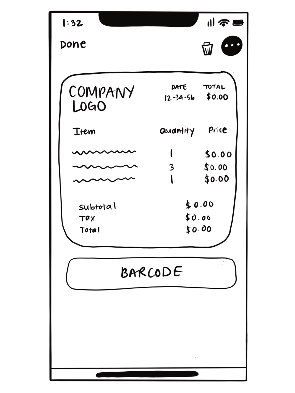 Using the Procreate app on my iPad, I began sketching the receipts feature. I was careful to study the Apple Wallet and mimic the existing components to ensure smooth integration with the new feature. My goal was to make it as seamless as possible.