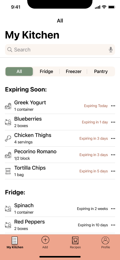 The goal is to design the MVP of an end-to-end iOS app that helps users keep track of their groceries and reduce food spoilage in households.