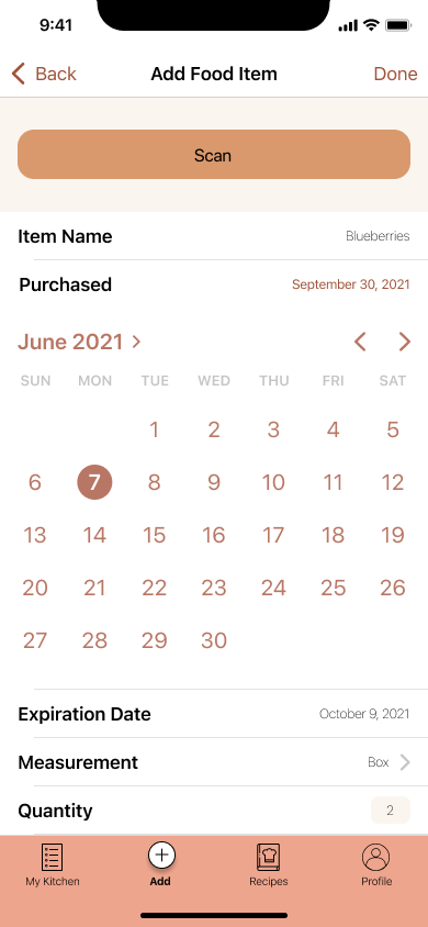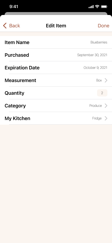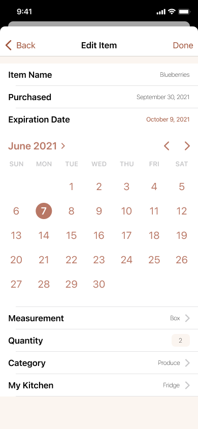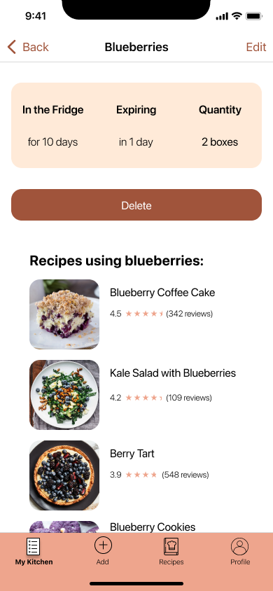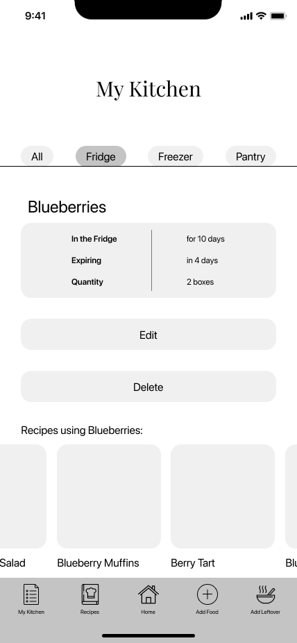 Change the expiration date for blueberries in “My Kitchen”
