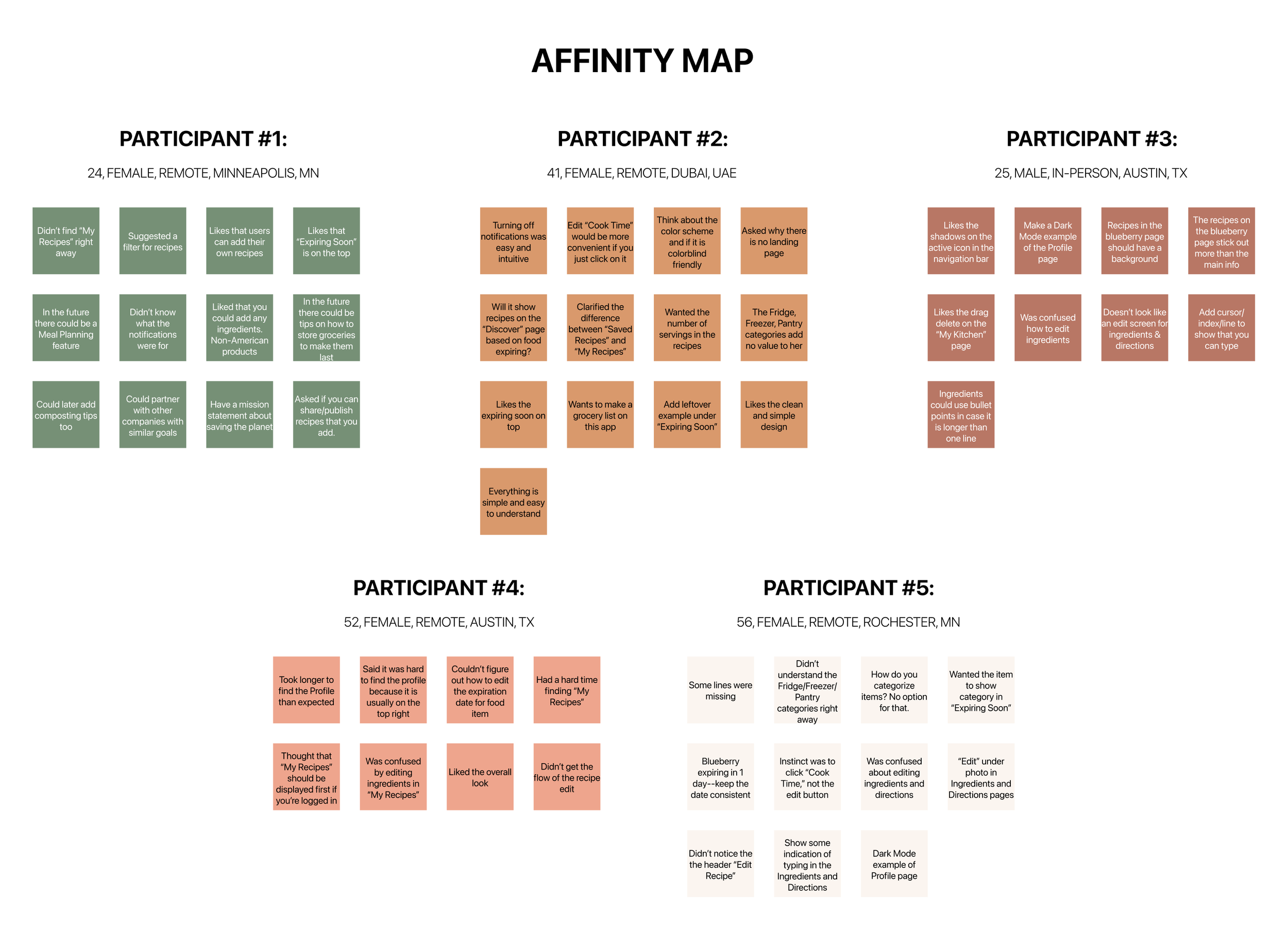 To better understand my users, I asked interviewees about their grocery habits to identify any challenges. I discovered that everyone I interviewed wastes more food in their households than they would like to. Users throw away Produce most of all groceries. Users equally throw away food before they get a chance to use it and after it is cooked (leftovers).